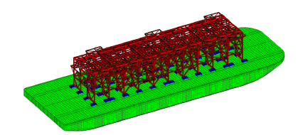 On the Structural Engineering scope of work, Longitude produced the Module and Barge Interaction Analysis using FEMAP software, the grillage and sea-fastening design using FEMAP and Staad.Pro software, the modules’ motions and deflections and the preparation of module stowage arrangement drawings.