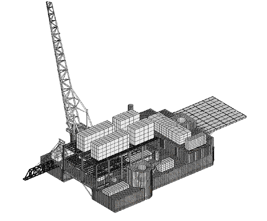 Local analyses were conducted to verify the leg to mat local strength and fatigue behavior and the integration of the Topside modules, LER and Generators. Longitude was also contracted to provide a dropped object analysis, a boat impact analysis, the addition of a new linking bridge and of equipment foundations. These local studies were done using either SACS or FEMAP software.