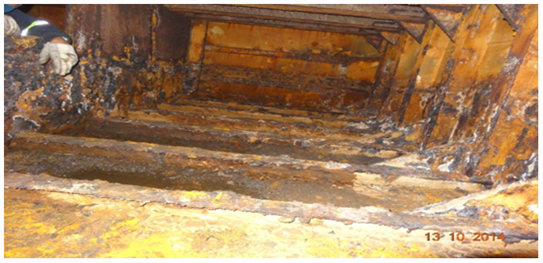 CENDOR MOPU was converted from drilling rig. Drill water tank, Salt water tank and Mud tank became void spaces as a MOPU, those tanks may be used as seawater ballast tank during transit, the tank structure can be heavily corroded if the tank did not been cleaned and keep dry.