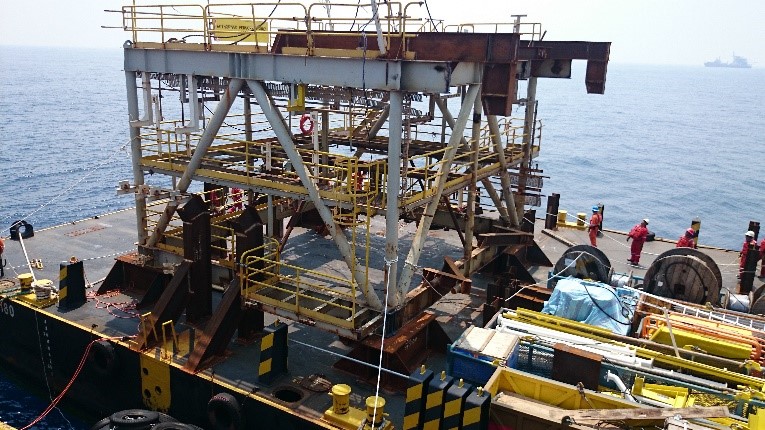 SWLT was removable type structure by slot-in sockets. Due to corrosion and unexpected weldings, the crane was unable to pull up the SWLT during lifting, so the pins have been cut during removal. Scaffolding is required for access for cutting.