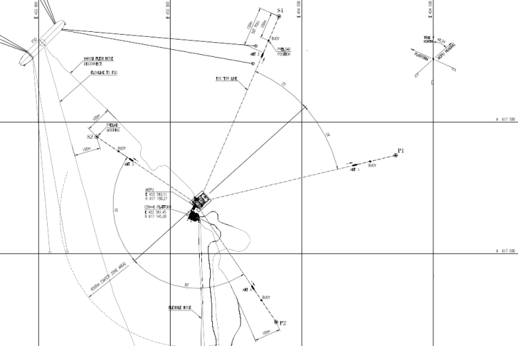 Design of mooring arrangement should take care of subsea properties. Anchors should not be placed within 100m of a subsea asset. For mooring line pull towards the subsea asset, the anchor to be located more than 300m away from pipeline or cable. Vertical clearance of mooring line should be more than 10m from subsea asset at any tension. Surface buoy can be used if needed.
