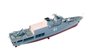 Hypermodern patrol vessel fully equipped to handle protection and defence roles such as: defending territorial seas, deterring aggressive or intrusive acts, maritime surveillance, protecting maritime assets, fisheries protection, protection of internal security and border control. Also deployable for anti-drugs and smuggling operations, multi-national peace support operations, humanitarian aid and crisis management.