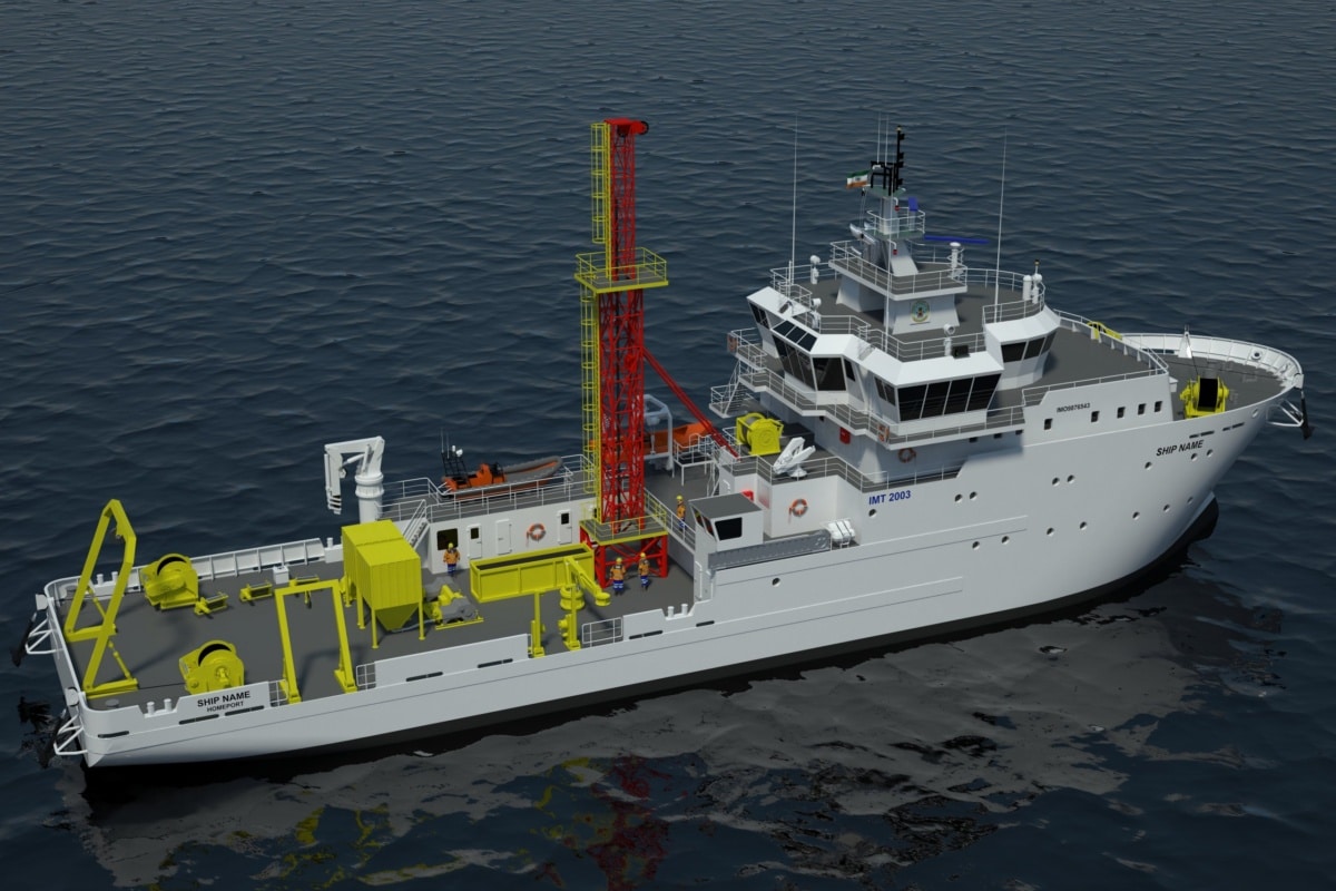 The OSD-IMT2003 Geotechnical Research vessel is a shallow draught vessel specifically designed for working in coastal waters. In addition to having twin azimuth units and a multidirectional bow thruster, the vessel is equipped with a four point mooring system to ensure precise positioning when the seabed core sampling drilling unit is in operation. The vessel’s hydraulically operated drop keel is fitted with sonar sensors . The vessel is also capable of water column measurements and seabed sampling.