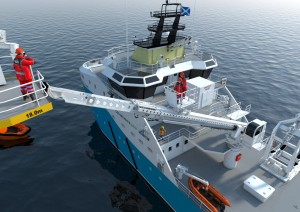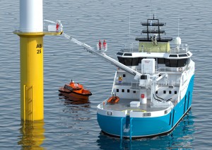 Searching for a more cost effective solution in the ever evolving market of Service Operation Vessels (SOV’s), OSD-IMT came up with the OSD-IMT9604 “mini SOV”. Based on our successful series of ERRV’s, this LOA 51 m design provides comfort for technicians and crew and offers wide operability. The mini SOV fills the gap between (large) CTV’s and the big SOV’s. It is equipped with a Z-bridge Bring-2-Work system, which can work both as a technicians transfer system and as a motion compensated crane. For light weather conditions the daughter craft can be used to transfer up to 2 windfarm service crews. Accommodation space of up to 24 technicians, a covered storage area for spare parts and a battery hybrid power generation system driving the propulsion system make for a full-fledged DP2 SOV.