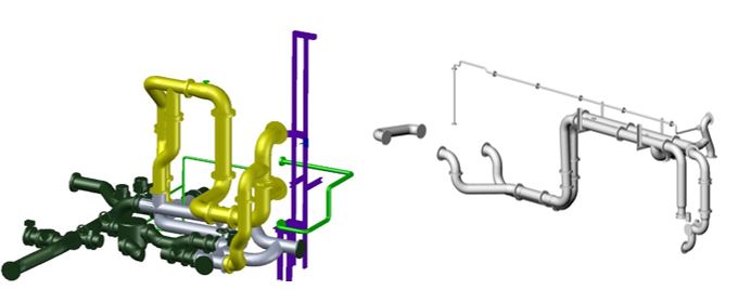 In order to fit the plant on each ship, a mix of new pipe sections and modified sections were required. To save on installation time, any existing pipe sections requiring modification were drawn up and fabricated prior to the arrival of the ship.