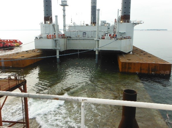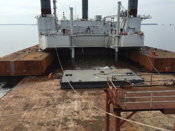 Longitude was contracted by Kencana HL Sdn Bhd to provide detailed engineering associated with conversion of a MODU to self-elevating accommodation rig, transportation and installation studies. As part of this scope, the rig was towed to a different shipyard utilizing dry tow. Upon reaching the designated location, the rig required to be floated off the transport barge. This required preparation of detailed analysis and procedure. The mat had to be ballasted in designated sequence to achieve the required trim, such that the rig could continue to maintain positive stability throughout all stages of the operation.