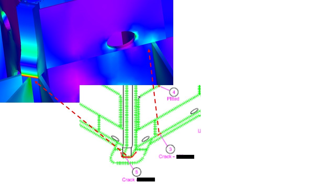 The stress hot-spots in the FEA showed a very good correlation with the cracking locations, allowing the causes and remedies to be investigated further. This analysis showed that the cracking was caused primarily by large overturning moments when the spudcan was being used on different soil types to the original design. Longitude specified local repairs and strengthening to extend the life and also performed global analysis and redesign of the spudcan structure to suit the conditions more appropriately.