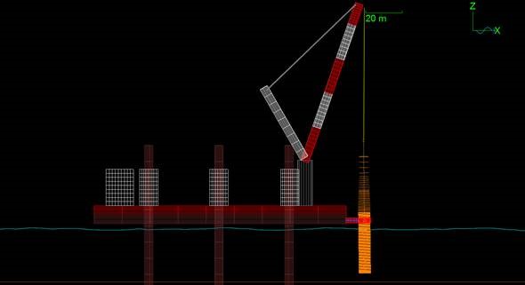 In addition to this, and following an initiative from Rampion, Longitude also collaborated with the manufacturers of the crane tugger winch control system to numerically model its functionality and to develop an enhanced control system that would sense and damp down the motion of the piles.